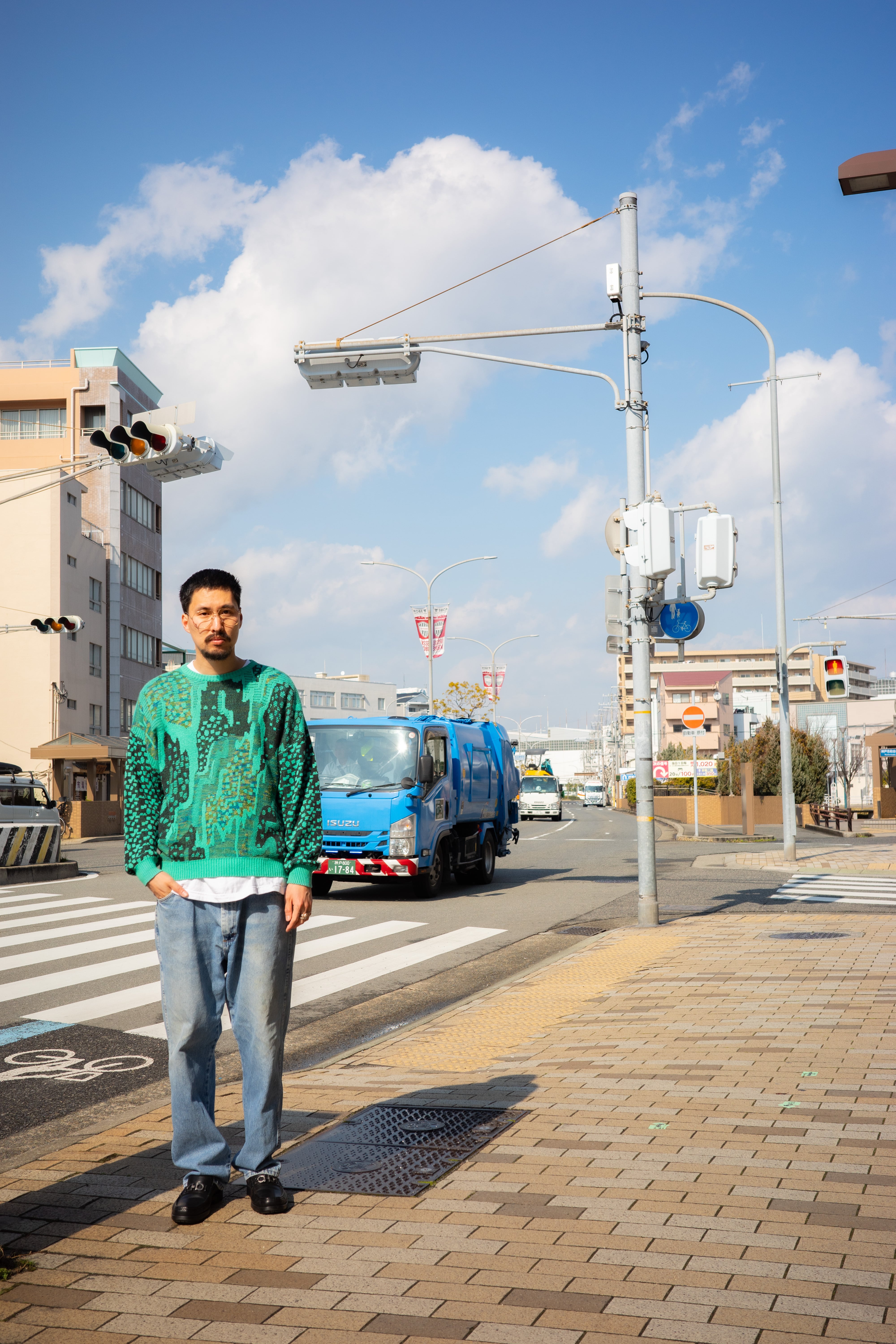 ドロップショルダーなのでゆったりとしたストリートブランみたいなシルエットです。